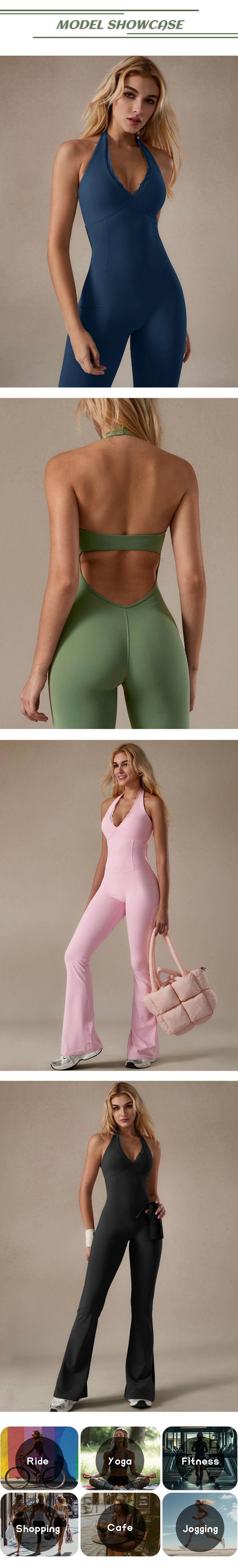 ·Stretchy Bodycon Gymwear with Lace Accents·Breathable Soft Fabric Yoga Jumpsuit (Backless Design)