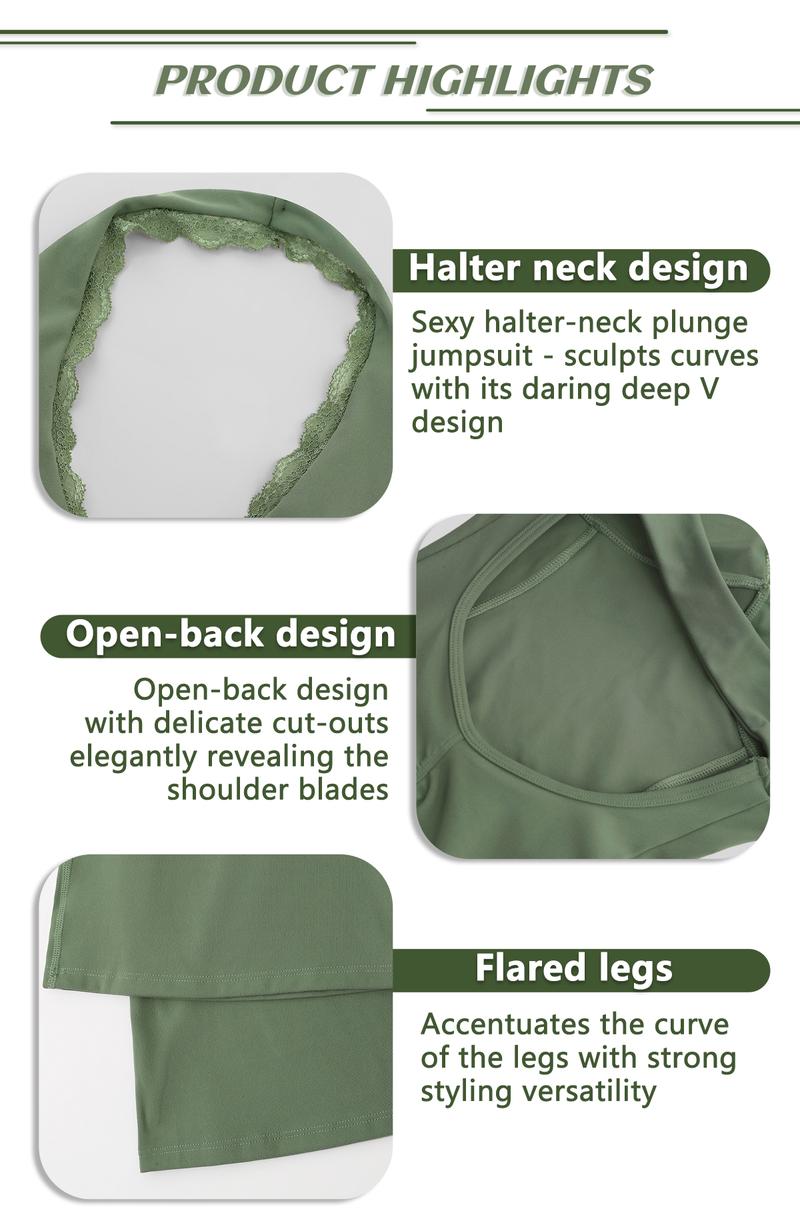 ·Stretch Lace-Trimmed Halter Activewear·Comfy Backless Athleisure Set (Stretchy Fabric)