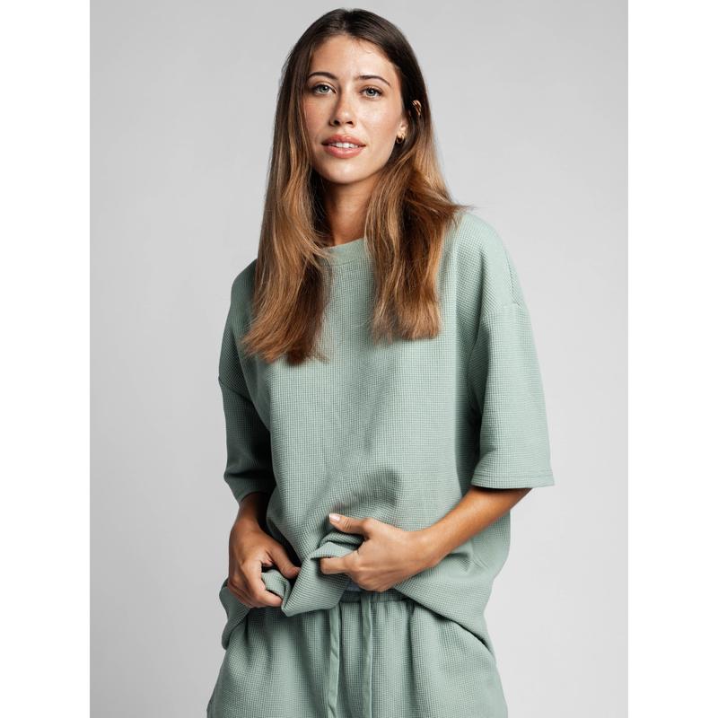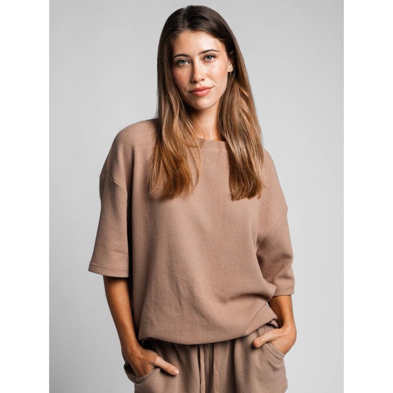 Relax in ultimate with our Waffle Lounge Tee. Crafted from our softest, heavyweight cotton waffle fabric, this laid-back tee features a drop shoulder short sleve and relaxed fit for a perfect balance of style and comfort.